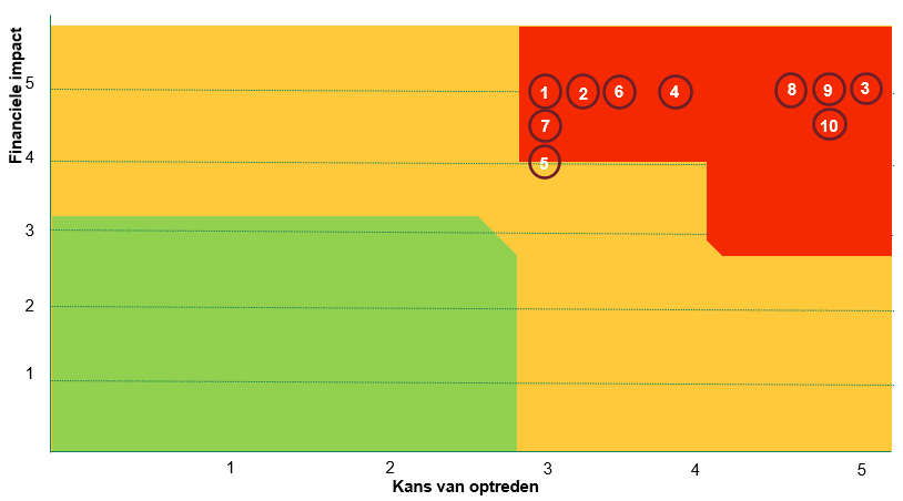 In de voorgaande tabel zijn de risico's opgenomen die corresponderen met de nummers in de onderstaande grafiek.